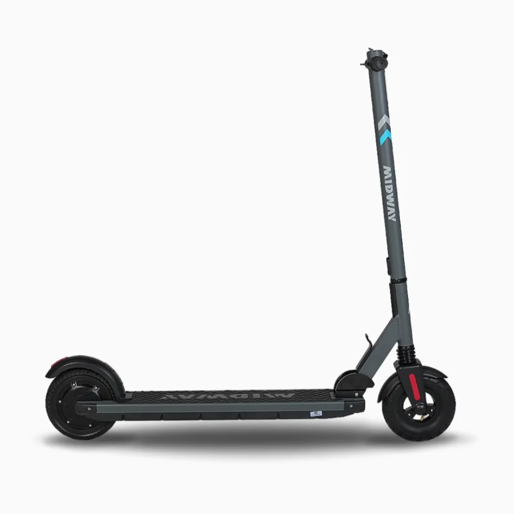 Электросамокат MIDWAY YAMATO 0809, выпущенный в цвете серый металик полностью отвечает современным запросов рейдеров РФ и СНГ. После ребрендинга модель стала другой, хоть минималистичность дизайна сохранилась. Внешне модель компактная, эргономичная, легко складывается и транспортируется. Небольшой вес допускает пользование техникой детей и взрослых весом до 100 кг.