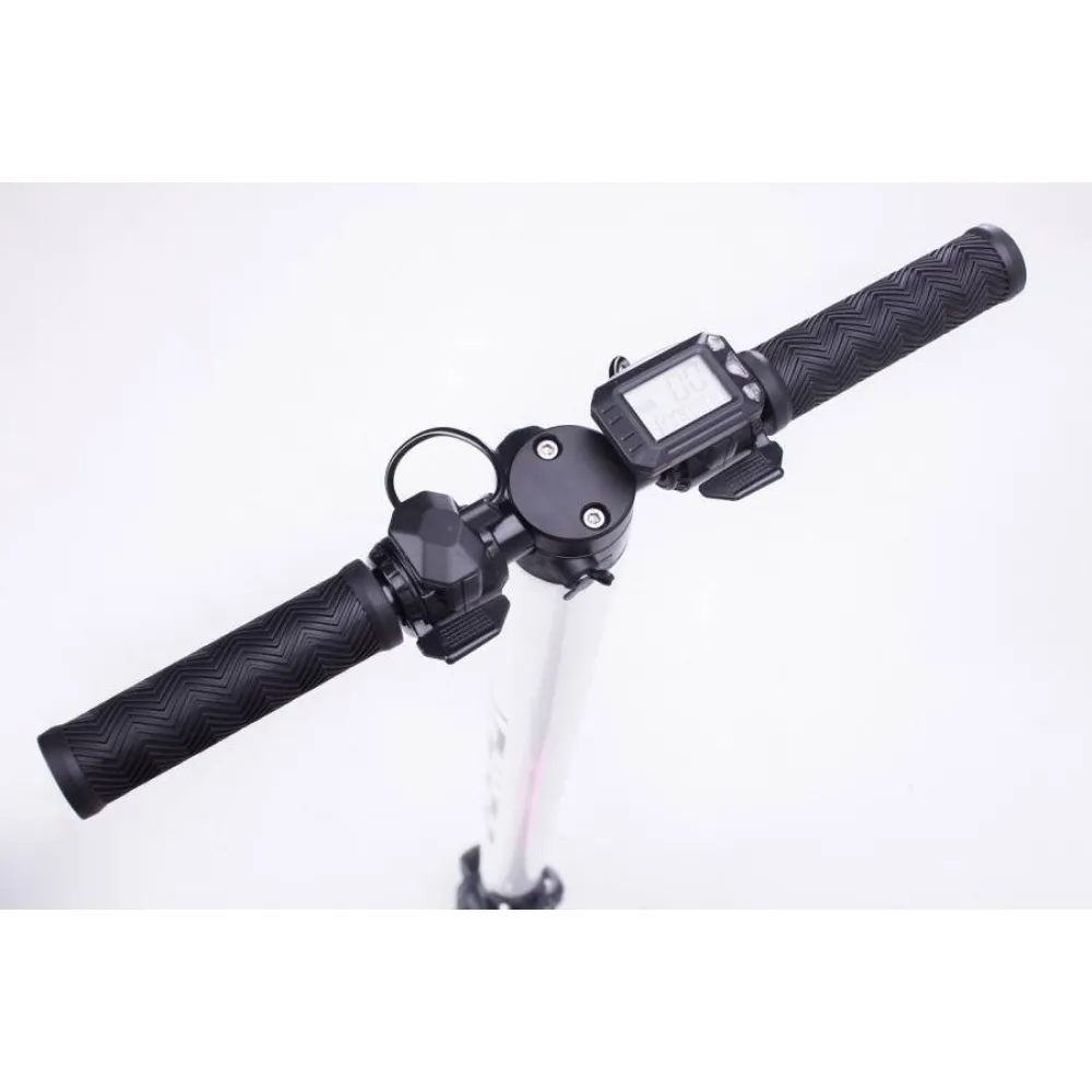 Корпус электрического самоката выполнен из алюминия и карбона – сочетание таких материалов обеспечивает высокую прочность, износостойкость и небольшой вес. Масса данной модели составляет всего 6,3 кг! За счет облегченного корпуса значительно повышается маневренность транспортного средства, поэтому в моменты внезапного торможения вы сможете полностью контролировать электросамокат.