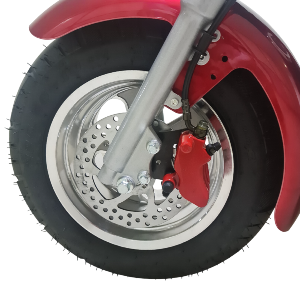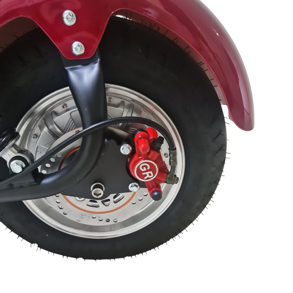 Электроскутер Citycoco GT E30 в красном цвете — это универсальное средство передвижения. С мощностью 3000W и задним приводом, он обеспечивает отличную динамику и маневренность на городских улицах. Благодаря двухколесной конструкции и надувным колесам диаметром 18 дюймов, скутер уверенно держится на дороге, что делает его идеальным для поездок по различным покрытиям.Съемный аккумулятор с напряжением 60V позволяет преодолевать расстояние до 50 км на одном заряде, что делает его идеальным вариантом для ежедневных поездок. Время зарядки составляет всего 5 часов, что обеспечивает быструю готовность к новым приключениям. Кроме того, в конструкции предусмотрено дополнительное место под аккумулятор, что увеличивает возможности автономной работы.Скутер весит 75 кг и может выдерживать максимальную нагрузку до 200 кг, что делает его подходящим для различных пользователей. Дисковые гидравлические тормоза обеспечивают надежную остановку, а большое мягкое сиденье и амортизаторы гарантируют комфорт даже при длительных поездках.Дополнительно, Citycoco GT E30 оснащен бортовым компьютером, зеркалами, звуковым сигналом, фарой и поворотниками, что повышает безопасность и удобство. Большая дека под ноги и прочная конструкция делают поездки еще более приятными.Электроскутер Citycoco GT E30 — это идеальное сочетание стиля, мощности и комфорта для тех, кто ценит удобство и скорость в городской среде.