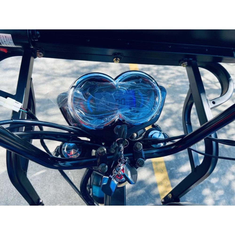 Производитель помнит о безопасности пользователей и позаботился о том, чтобы транспорт был устойчивый и маневренный. Модель оснащена высококачественной тормозной системой, что позволяет легко и плавно передвигаться. Соблюдая рекомендации по эксплуатации можете не беспокоиться о возникновении форс-мажоров. Комфортабельность электротрицикла обеспечивается благодаря правильной конструкции и удобному сидению.