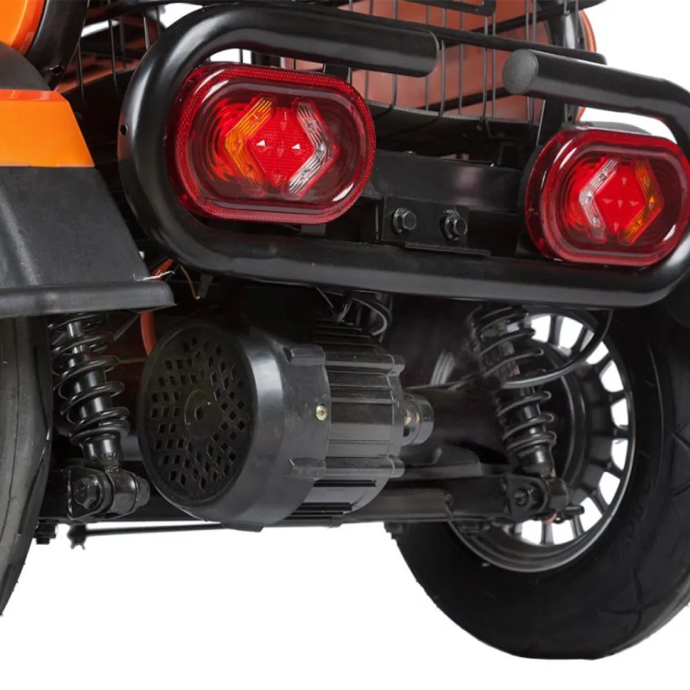• Компактность и легкость: С весом всего 70 кг и габаритами 114х70х65 см, этот электрический трицикл легко маневрирует в условиях городской среды, не занимая много места при хранении.