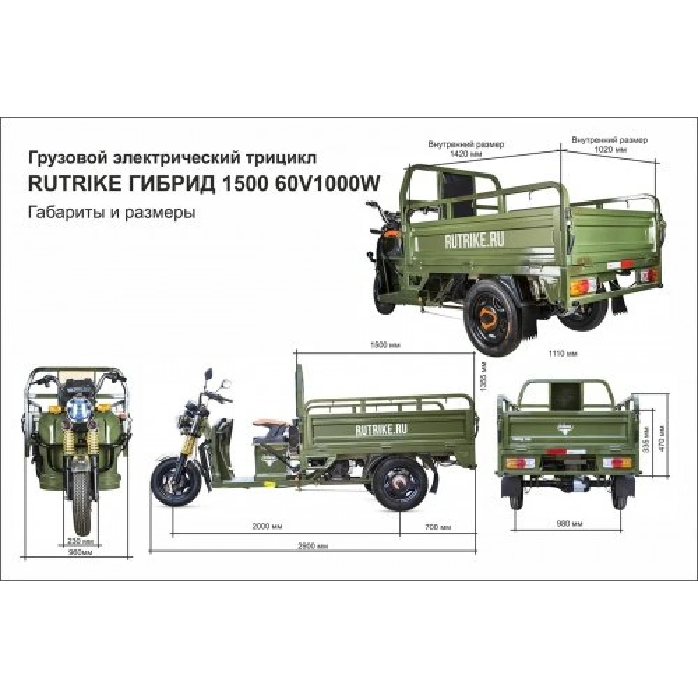 Грузовой электротрицикл Rutrike Гибрид 1500 60V1000W32Ah Зеленый
