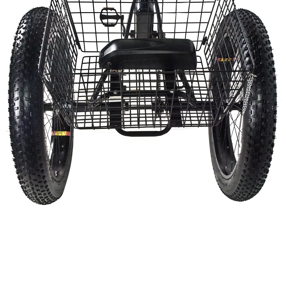 Трицикл изготовлен с учетом высоких показателей комфорта и удобства. Модель оснащена задней вместительной корзиной, оснащен 26-дюймовыми вездепроходимыми колесами. С такими параметрами несложно преодолевать препятствия и пересеченную местность. При мощности двигателя 500 Вт максимальная скорость составляет 40 км/час, запас хода -50 км.