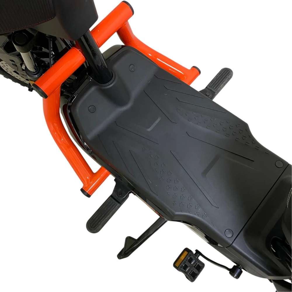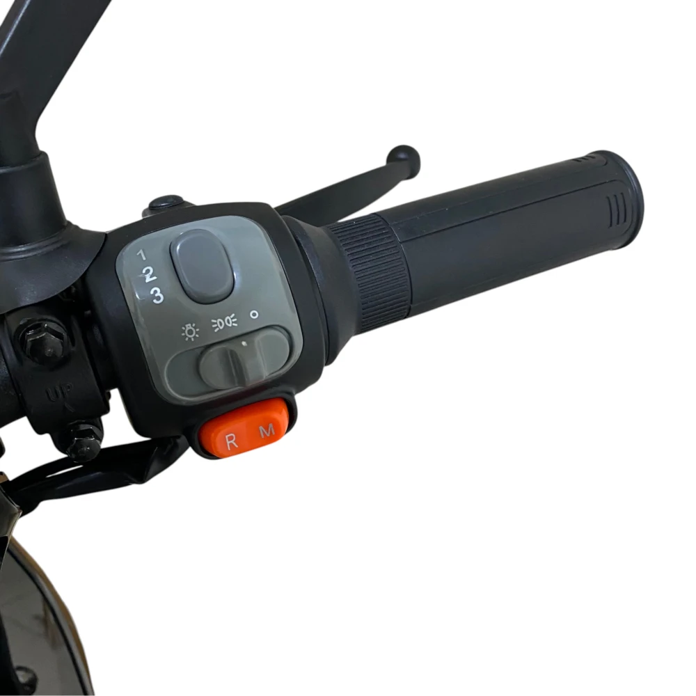 • Мощность 1000 Вт обеспечивает уверенный набор скорости до 50–55 км/ч (в зависимости от настроек и режимов) и позволяет ездить без перегрузки на склонах и при полной нагрузке (водитель + груз в кофре).