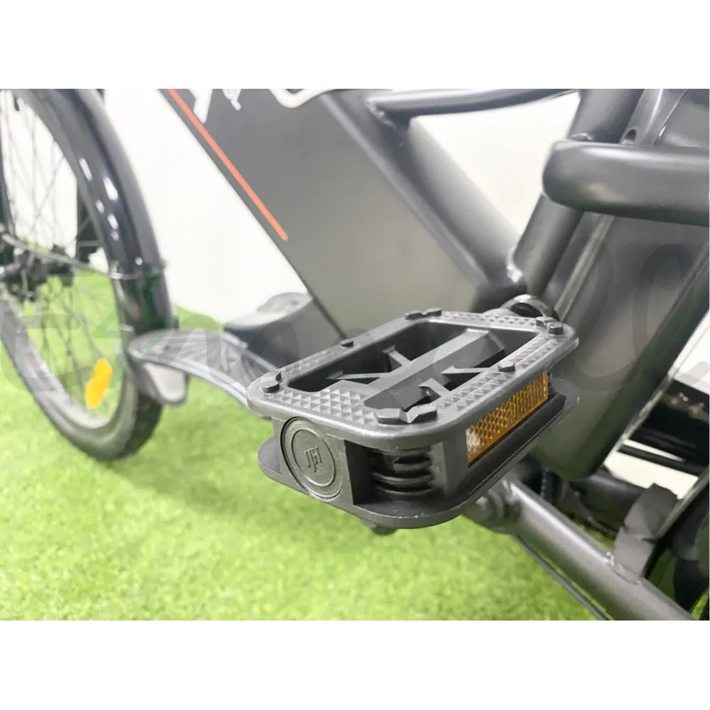 Технические характеристики транспортного средства представлены следующими параметрами. Мощность фирменного мотор-колеса – 500 вт. Качественная АКБ с характеристиками 10,4 Ah Li-ion гарантирует пробег до 50 км на одной подзарядке со скоростью 25-30 км/час. Грузоподъемность велогибрида – 130 кг, колесная часть – 24дюйма, тормозная система – передняя дисковая механическая, привод – задний.